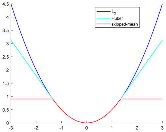 for any . Note that skipped-mean loss is not-convex and is a special case of Hampel loss, that belongs to the family of redescending M-estimators, see [24], with high breakdown point, close to 0.5. This means that is robust to outliers. For a summary, see Appendix 1 in [16].