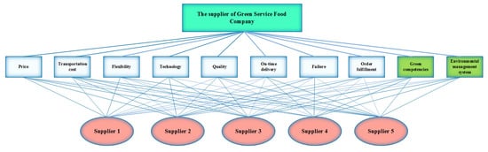 AHP hierarchy for supplier selection in Green Service Food Company.