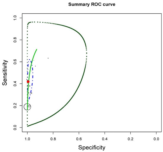 - Reitsma, J.B.; Glas, A.S.; Rutjes, A.W.; Scholten, R.J.; Bossuyt, P.M.; Zwinderman, A.H. Bivariate analysis of sensitivity and specificity produces informative summary measures in diagnostic reviews. J. Clin. Epidemiol. 2005, 58, 982–990. [Google Scholar] [CrossRef] [PubMed]