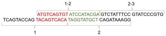 We remind that the DNA molecules usually form a double helix consisting of nucleotides containing a phosphate group, a sugar group, and a nitrogen base. There are four different nucleotides: adenine (“A”), thymine (“T”), guanine (“G”), and cytosine (“C”). In the helix, the nucleotides join in pairs according to a fundamental complementarity rule: “A” is always opposite to “T”, and “G” is always opposite to “C” [19]. DNA computing allows modeling in a biological laboratory dealing with double-stranded DNA, which is able to “split” into two separate strands (by heating) or to do the reverse action annealing with the help of the particular enzyme ligase.