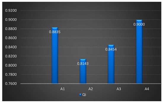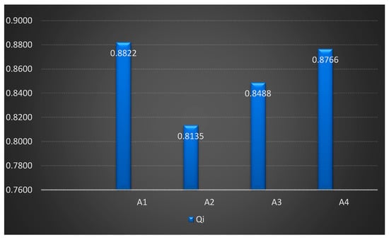 The weights of the criteria are then used to run the WASPAS model. Qi1 and Qi2 are the performance scores of each alternative calculated using the weighted sum model and weighted product model, respectively. The final performance score of each alternative (Qi) is then calculate from Qi1 and Qi2. The results of the WASPAS model are shown in Table 8 and Figure 5 below: