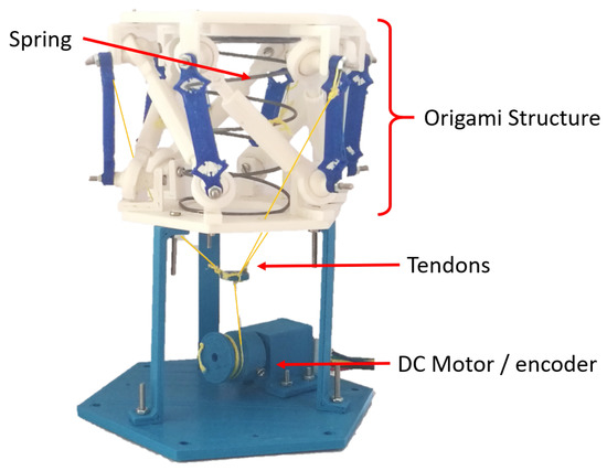 A simple link prototype has been built and experimentally tested to validate its scalability and shape change. The model with three tendons actuated by a motor allows the folding of the origami structure while an internal spring generates the unfolding.