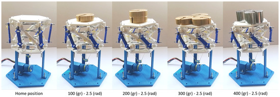 To verify the robustness of both the control and the structure, the steps were tested with different payloads between 100 and 400 g, as shown in Figure 23.