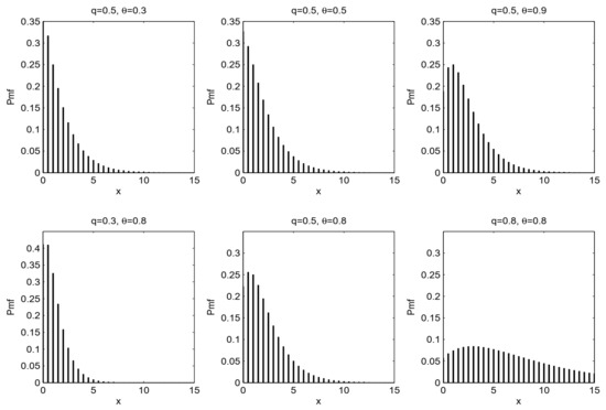 Figure 1 presents the plots of the pmf of the TRTG model for some choices of