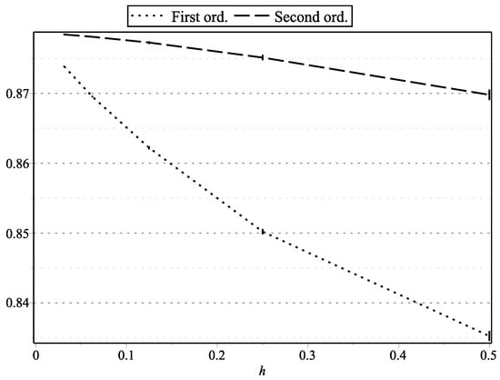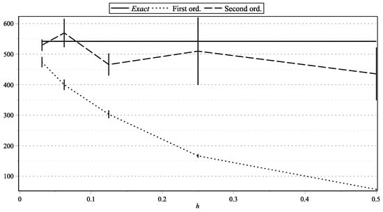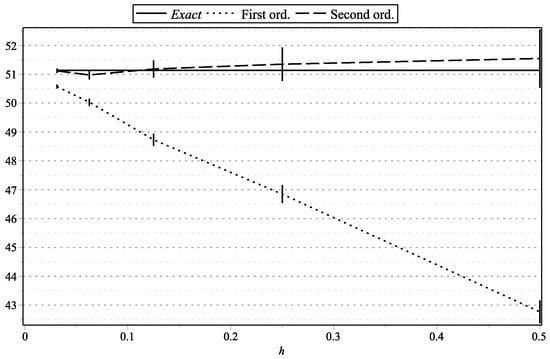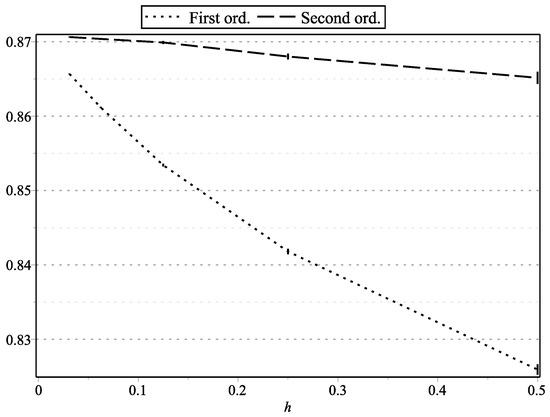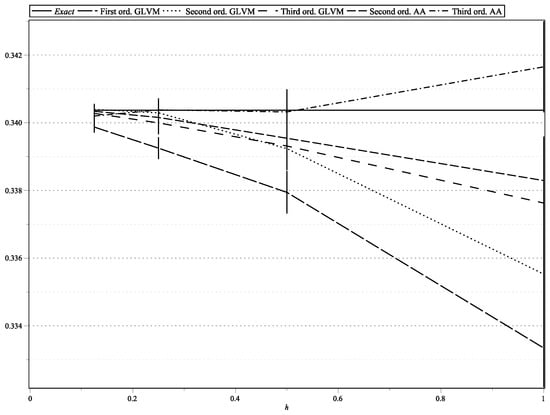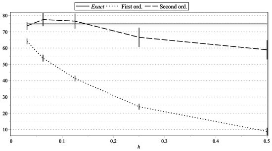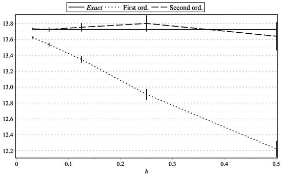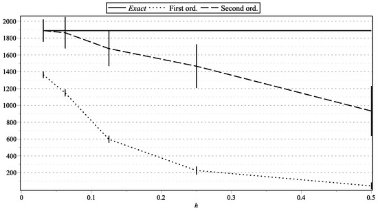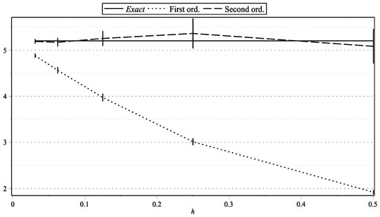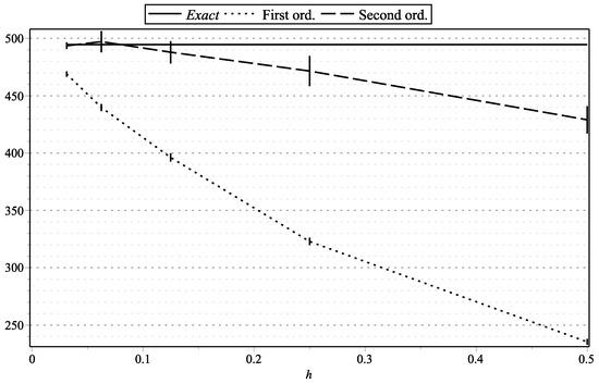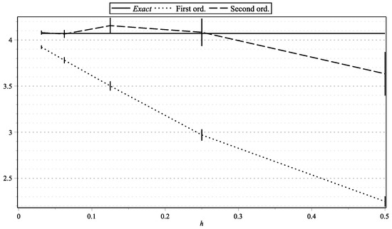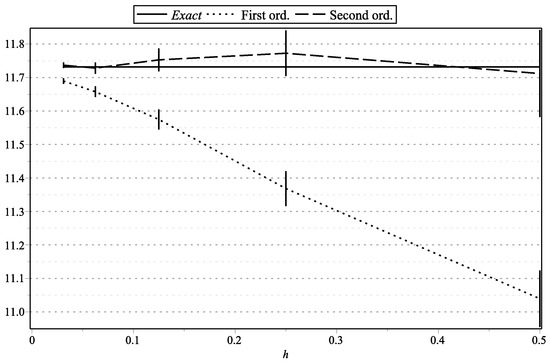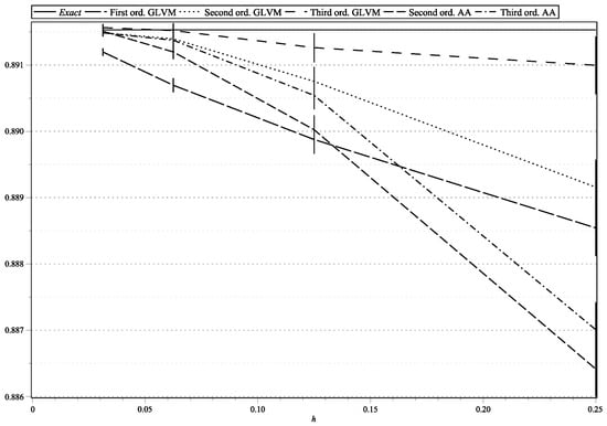Below, we present the results by a number of figures, where the exact and approximate expectations are given as functions of the approximation step size h. For the reader’s convenience, we give a list of graphs in the figures: