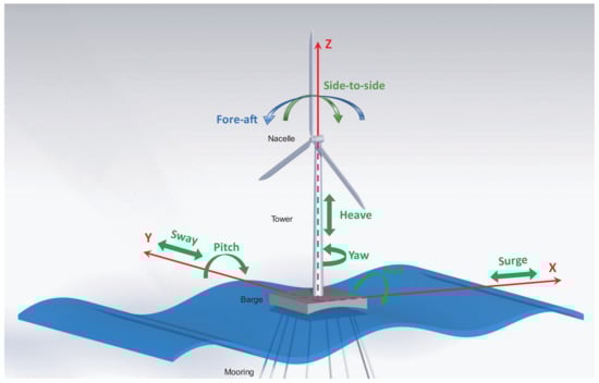 The work carried out in this paper revolves around the floating offshore wind turbine which is illustrated in Figure 1. The FOWT under study is the NREL offshore 5 MW baseline wind turbine and the adopted barge model is the ITI Energy barge, a simple rectangular platform which is commonly used for research in the literature for load analysis and conception verification of offshore wind turbines.