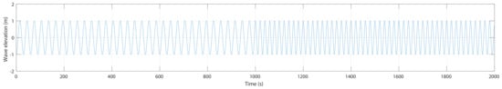 To test the efficiency of the proposed OWC-based structural control, a study case considering regular waves with two different wave periods has been performed. In this simulation study, the first wave input considered from 0 to 1000 s has a wave amplitude of 1 m and a wave period of 30 s, but the second wave input from 1000 to 2000 s has a wave amplitude of 1 m and a wave period of 20 s as shown in Figure 6.