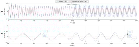The obtained tower top fore-aft displacement of the OWC-based FOWT has been compared to the one of a standard barge-based FOWT and are both illustrated in Figure 10.
