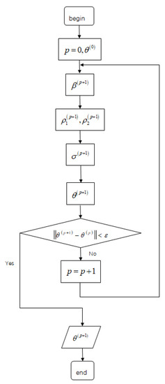 Iterate (5) to (7) until the successive value satisfies , where and is a given tolerance value. In the following simulation, we let be . Denote the final estimate of as , then .