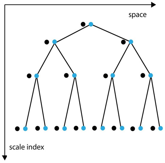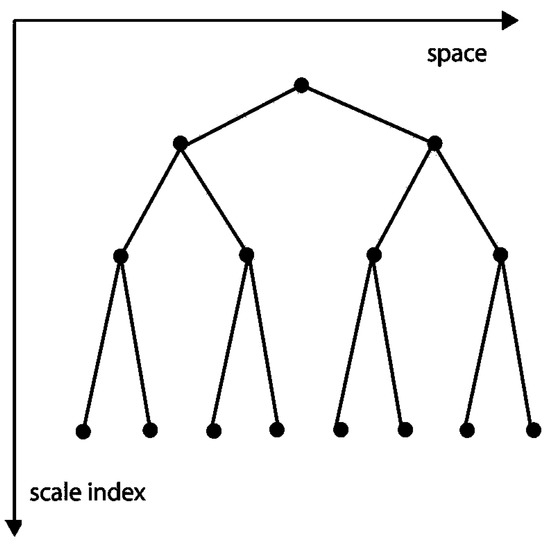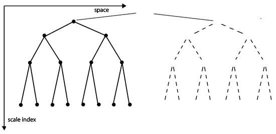 The hierarchical structure of a wavelet base is reflected in detail coefficients, which means that each of them at a scale j of the binary tree has two successors at the next one (Figure 6). The succession is related to the measurement process whose steps correspond to scales of the hierarchy. In that respect, the time concerning a wavelet base is presented by the operator