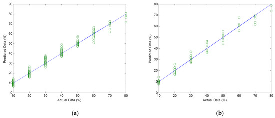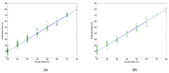Regression diagrams of actual data and predicted data using presented MLP–LM models are shown in Figure 11 and Figure 12. In Table 1, data number, scale layer thickness, actual outputs, and measured outputs for test data set are tabulated.
