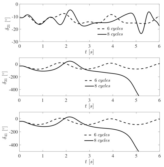 4.2. Case 1. Three-Phase Failure Cleared after Eight Cycles
