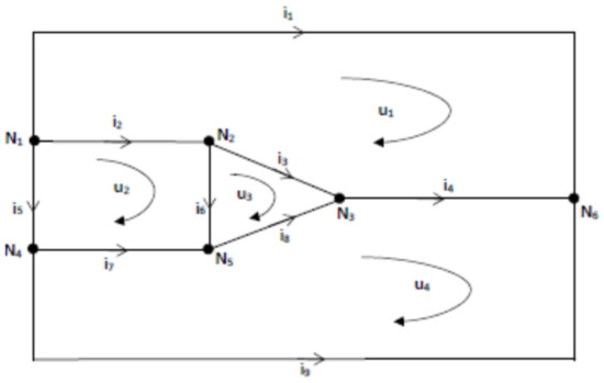 - Prove that one of Kirchhoff’s equations is redundant; that is, if it is verified at 5 nodes, it must also be verified at the 6th node.