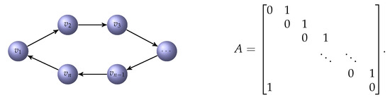 Let represent the adjacency matrix of a directed circular graph. The adjacency matrix and the associated graph are displayed in Figure 2.