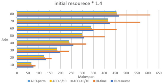 | 30 jobs with 1.1 × initial resource | 30 jobs with 1.4 × initial resource | |||||||||||||||||||