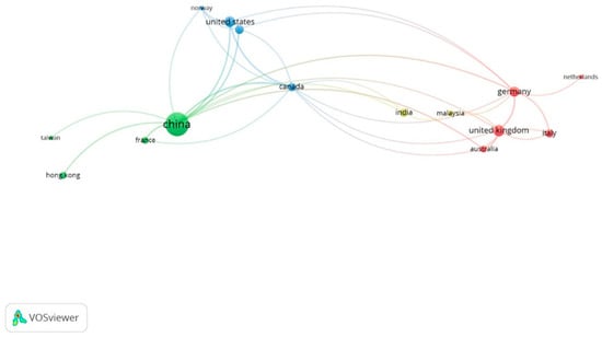 Another fascinating question is how authors from various nations have interconnected with authors from other countries. A co-authorship analysis with governments accomplishes this. The co-authorship pattern is depicted in Figure 2, in terms of nations performing green finance research. Recall that we can determine a country’s total number of publications and its critical ties with other nations through co-authorship.