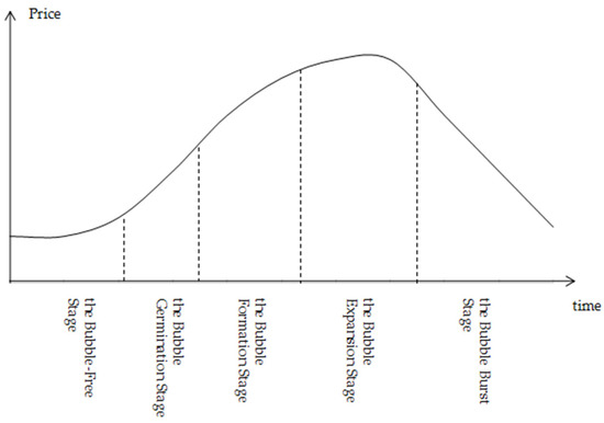 For a long time, research on the relationship between asset speculation and bubbles has attracted the attention of economists. Hirshleifer and Feiger believe that investors’ subjective belief differences induce speculation, resulting in systematic deviation of asset prices and, eventually, the formation of asset bubbles [14,15]. Kindleberger believes that the essence of asset speculation is that inside speculators raise asset prices and sell them to outside speculators at peak times [16]. As a result, outside speculators will buy at high prices and sell at low prices. At the same time, investment income and investment risk are two important indicators that determine whether investors choose to speculate. Among them, investment income mainly evaluates future changes in asset prices, while investment risk mainly evaluates various uncertainties that affect investment income. The greater the uncertainty, the greater the investment risk [1].