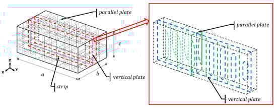 A prismatic pressure vessel is a new-shape pressure vessel that increases the volume efficiency to reduce dead space, which is a disadvantage of cylindrical or spherical pressure vessels. As shown in Figure 3, the outside is rectangular, whereas the inside exhibits a repeating lattice structure. It is designed such that tension is applied to the lattice structure owing to internal pressure. Various types of prismatic pressure vessels exist depending on the repeated load carrying structure. Ahn et al. (2017) [29] proposed a prismatic pressure vessel in the form of an X-beam; Choi et al. (2018, 2020) [30,31] proposed a plate-stiffened prismatic pressure vessel using a plate.
