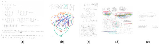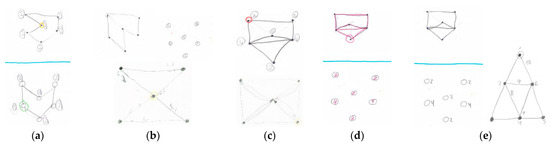 Tracing Eulerian cycles. Drawing made by participant: (a) A3; (b) A5; (c) A4; (d) A6; (e) A7.