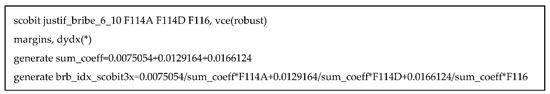 Stata processing script for deriving the proposed bribe index based on a Scobit regression with resulting coefficients expressed as average marginal effects (Table 7, Model 1). Source: Own calculation in Stata 16MP 64-bit.