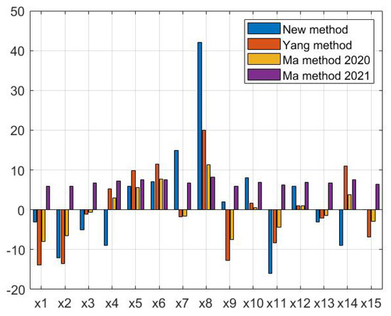 The comparison results among the present method and methods in [25,43,44] are given in Figure 1.