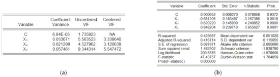 Predictive model (5) second test results. (a) VIF test results of Model 6.; (b) model (5) second test result.