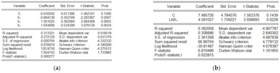 The Eviews software was used to test the correlation between the data samples of the independent variables X1 to X5, and the results are shown in Table 6. The correlation coefficients between every two variables are both within 0.8. The least square method was used to estimate the parameters of the preliminary linear regression model (4), and the regression coefficient estimated value of the model (4) is obtained by using Eviews. Thus the prediction Equation (5) of model (4) is obtained: