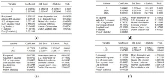 The data information in Figure 8 is consistent with that in Figure 6, that is, the significance of each parameter is judged by observing t-Statistic and p value, and the significance of the model is judged by F-Statistic and Prob (F-Statistic). In the result values of several equations, the p values of the above equations are all less than 0.05, and the t and F values are both significant. The results are shown in Figure 8. From the results of the above model, it is concluded that the linguistic style of appealing to personality (X5) has a positive effect on the sales volume of clothing, accessories, and household goods, which is consistent with previous research and previous hypotheses. The linguistic style of appealing to reward (X1 has a positive impact on the sales volume of beauty, food, and household goods. Consumers who purchase these types of goods pay more attention to rewards, so they are more affected by the linguistic style of reward. It can be found in the model results of the clothing product type that the linguistic style of appealing to logic (X3) has a positive effect on the sales volume of clothing, while the linguistic style of appealing to exaggeration (X2) has a negative impact on the sales volume clothing. It is worth noting that for the digital appliance type products, the linguistic style of appealing to exaggeration has a great positive influence on the sales volume of this type of product.