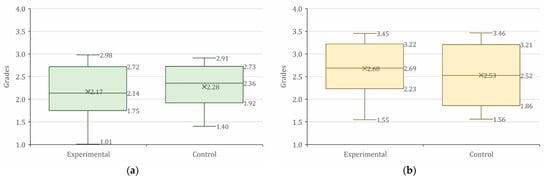 Figure 5 shows the apparent positive incidence of the proposed experimental treatment. The results show that, on average, the grades obtained in the post-test by the experimental groups are higher than those obtained by the control groups.