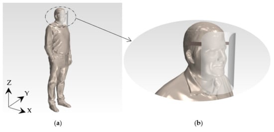 Human geometry: (a) Human body (1.8 m tall); (b) Face shield in detail.