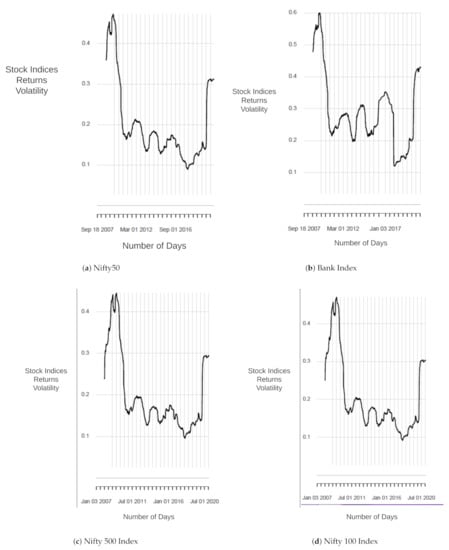 Emenogu et al. [] investigated the volatility of stock price using the nine variants of GARCH models. NGARCH model performed better than other models. Nigeria Plc data from 2001 to 2017 were considered for experiments. Cao et al. [] investigated the volatility of VIX options data using the GARCH model. OptionMetric VIX and SPX options data were collected from 2008 to 2012 for experiments. Sapuric et al. [] studied the bitcoin volatility using the EGARCH model.
