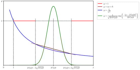 By contrast with weak convergence in (12), any convergence in (15) is absent. First, the right-hand side (RHS) of (15) contains the mathematical expectation which is increasing function of t. Second, we determine (15) under hypothesis that the MJP state X remains unchanged over the discretization interval: . In the general case, the probability of MJP state transition increases to 1 when the interval length t increases infinitely.