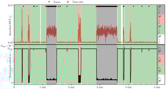 In general, the articles [26,27,28] represent a formal, detailed mathematical background of all applied inferences presented in this paper. We use it in Section 4 to develop a new congestion control algorithm as follows. At the first stage, we calculate a high-precision channel state estimate based on the available observations discretized by time. At the second stage, we apply a separation principle: the obtained filtering estimate replaces the actual MJP state during the process of the optimal control synthesis with the complete information.