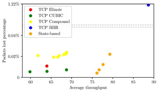 - Liu, S.; Başar, T.; Srikant, R. TCP-Illinois: A Loss- and Delay-Based Congestion Control Algorithm for High-Speed Networks. Perform. Eval. 2008, 65, 417–440. [Google Scholar] [CrossRef]