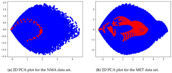 Figure 4. 2D PCA visualization of the NMA data set (a) and MET data set (b).