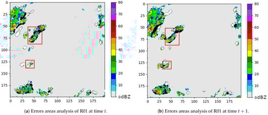 Figure 6. Actual composite reflectivity values on two consecutive acquisitions (tleft side image— and t + 1 right side image) from MET data.