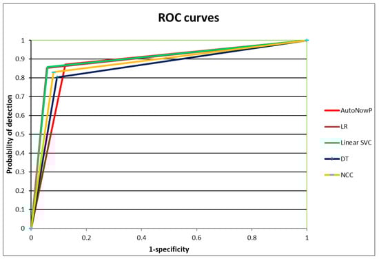 Figure 8. ROC curves for the classifiers from Table 4 on MET data set.