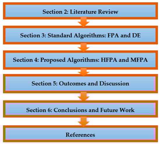 The structure of this paper is depicted in Figure 1: Section 2 describes works done previously on tackling the NESs. Section 3 describes the standard algorithms: FPA and DE. Section 4 shows our proposed algorithms, explaining them clearly and effectively. Section 5 exposes various experiments and presents some discussions. Finally, Section 6 presents our conclusions and future work.