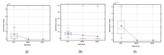 The flower optimization algorithm (FPA) proposed for tackling the global optimization based on mimicking the pollination process of flowers have had an effective performance for tackling several optimization problems [,,,,,,], but unfortunately, its performance still substantially suffers from stagnation in local minima because of the inability to explore several regions within the search space during the optimization process, in addition to having low convergence speed, which makes the classical FPA consume several iterations for searching better solutions within unpromising regions. Broadly speaking, the classical FPA was evaluated using 10 mathematical test functions under a population size of 25 and maximum iteration reaching 10,840; this is considered a significant rate to be consumed for coming to the desired outcomes. Furthermore, the authors in [] hybridized the classical FPA with the clonal selection algorithm (CSA) to solve 23 global test functions. This work was based on improving the local search of the classical FPA to avoid being stuck in local minima, and to reach better outcomes. In our opinion, that hybridization between two algorithms, to mix the advantages of each one to overcome their owning disadvantages, is considered a good alternative, but that might be sometimes ineffective because of difficulty in finding two or more algorithms completing each other to reach better outcomes. As an easier alternative, we see that the structure of the classical algorithms needs to be redesigned differently to create various updating schemes, working on exploring several regions within the search space for reaching better outcomes without wasting the iterations useless.