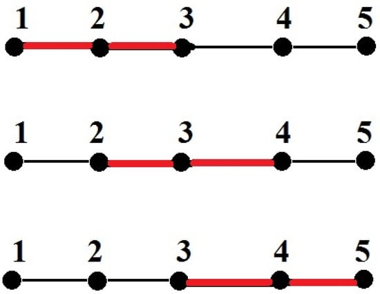 We define the characteristic function for a coalition as the maximum number of edges included in K without shared vertices (also called a maximum cardinality matching) [20]. This characteristic function is monotonic and superadditive. Let us demonstrate that is not necessarily a convex function. Recall that convexity means that the inequality holds for all and .