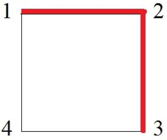 Then, condition (3), under which a point belongs to the core, reduces to , . However, and this non-strict inequality must hold as equality. (Otherwise, it will contradict the effectiveness condition.) The equality is the case if and only if and . Hence, the core has the form (see Figure 12).