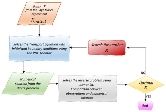In this work, a set of images of a dye tracer patch was used to determine the optimal diffusion coefficients from the advection–diffusion equation. The hypothesis was that, based on the inverse problem approach and the observational data of a dye patch, as a proxy for sediment transport, we expected to find optimal diffusion coefficients for the study site and under particular conditions without the involvement of sophisticated measurements to estimate it.