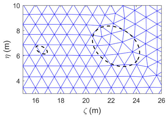 The domain was portioned into unstructured triangular elements with 2447 nodes and 1176 elements, for elements of approximately 1 m, as shown in Figure 2. For the solver options, the absolute, relative, and residual tolerance were set as the default values. The accuracy of the simulation was checked by reducing the relative tolerance, and with simulations with different element sizes (not shown).