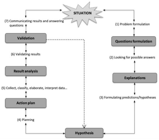 Figure 6). Modeling can come into play at this stage when looking for the validation of the hypotheses under consideration. The inquiry cycle could again be connected with a modeling cycle (on the left in