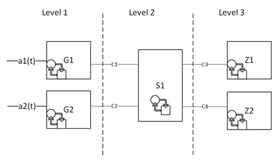 The structural diagram (Figure 2), redefined for virtual flows in components of the G, S, Z type, is shown in Figure 3.