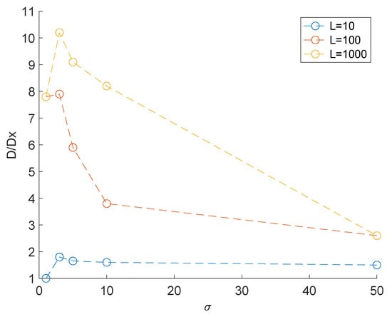 Thus, with the sample length increase, the flow will contain a larger number of sections with a significant steepness. Therefore, both the flow envelope (8) and the service curves are calculated by Equations (7) and (11) will change.