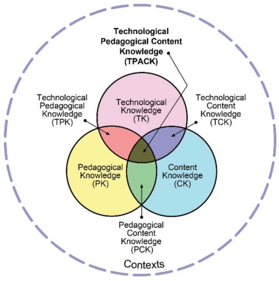 - Mishra, P.; Koehler, J. Technological Pedagogical Content Knowledge: A Framework for Teacher Knowledge. Teach. Coll. Rec. 2006, 108, 1017–1054. Available online: http://one2oneheights.pbworks.com/f/MISHRA_PUNYA.pdf (accessed on 22 November 2019). [CrossRef]