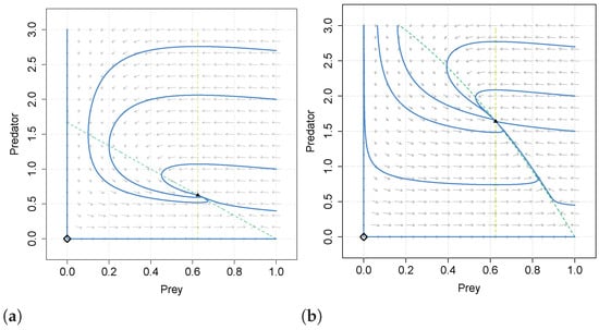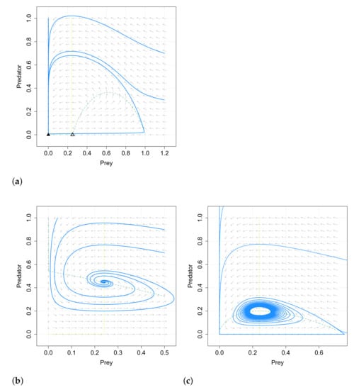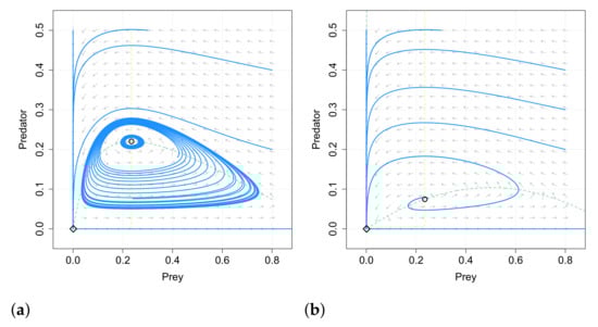 15. Rosenzweig, M.L.; MacArthur, R.H. Graphical representat of predator-prey interactions. Am. Nat. 1963, 97, 209–223. [Google Scholar] [CrossRef]