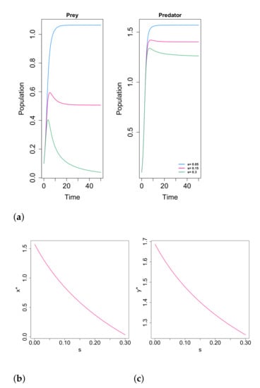 48. Merdan, H. Stability analysis of a Lotka-Volterra type predator-prey system involving Allee effects. Anziam J. 2010, 52, 139–145. [Google Scholar] [CrossRef]