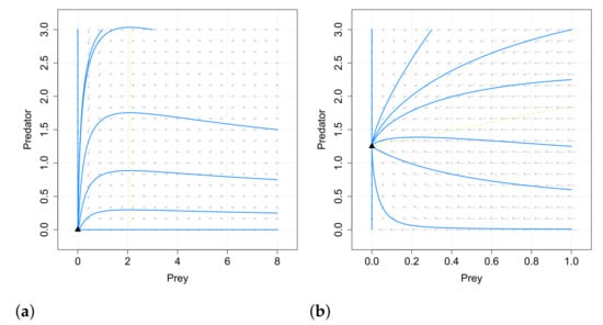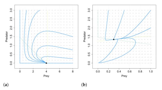 53. Bazykin, A.D. Nonlinear Dynamics of Interacting Populations; Series A: Monographs and Treatise; World Scientific Series on Nonlinear Science: Singapore, 1998. [Google Scholar]